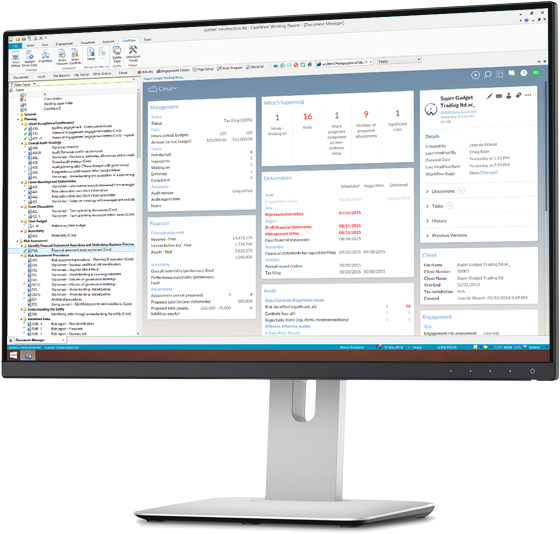 With Caseware Online, you’ll get full client portal functionality with easy sharing of secure files and messages. What’s more, you can create custom dashboards that give your Clients helpful views into the engagement process.